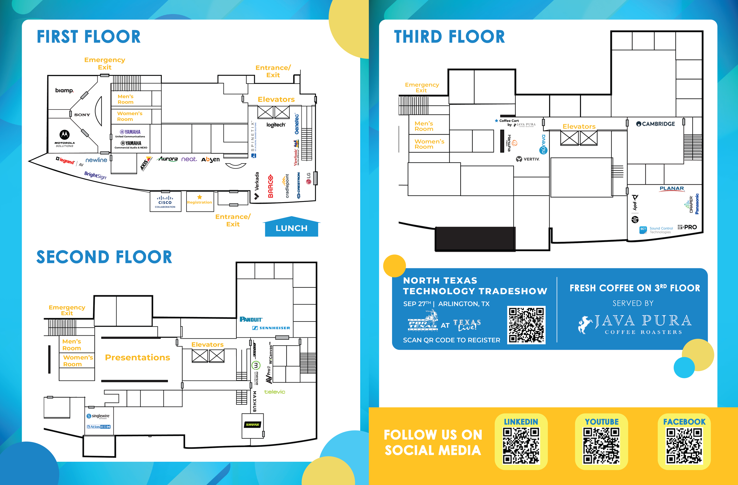Hosting an in-house trade show for over 40 sponsoring companies that showcases 3 different technology solutions required quite the preparation. One of the beginning steps for the event’s success was creating the visual theme and branding that would carry across multiple platforms, a challenge answered through gathering inspiration, assessing previous success while securing an innovative approach, and drafting many options from the ideas. Executing this design with bright colors, supportive imagery, and simplistic shapes helped convey the upbeat and cordial atmosphere needed to captivate the audience in signing up for the event.